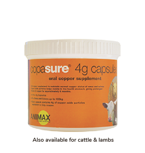 A proportion of the copper oxide particles lodges in the folds of the animal stomach lining. This provides a sustained-release source of copper for approximately 6 months. This steady supplementation ensures adequate copper status but avoids the sharp rises in copper levels which can be associated with copper toxicity.
